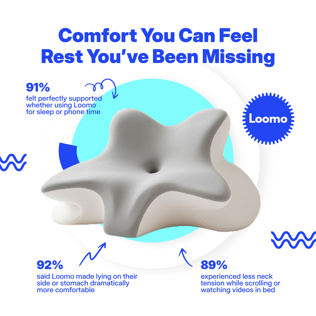Not at all. Loomo was designed for modern comfort — whether you’re working from bed, reading, scrolling, or napping. Its unique contour design keeps your head and arms supported in every position, so you can relax naturally without stiffness or numbness.